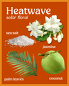 Immerse yourself in the warmth of summer with our Heatwave scented candle. A refreshing blend of delicate jasmine, earthy solar woods, and creamy coconut creates an inviting, sun-soaked ambiance. Perfect for evoking the essence of a sun-drenched escape, this candle brings a serene, tropical atmosphere to any space. Light it up and let the soothing scents transport you to paradise.