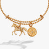 Embrace your wild spirit with this rope-textured bangle that celebrates equestrian passion in style. The standout three-dimensional horse charm sparkles with clear faceted crystals and charming floral details, while a companion "Unstoppable" charm features an etched marigold for an empowering touch. Perfect for Lunar New Year celebrations, or anyone who adores these majestic creatures, this playful bangle layers beautifully and catches the light with every gesture. The dimensional design and crystal accents deliver glamour and personality, making it an ideal conversation starter for horse enthusiasts and those seeking daily inspiration. A delightful piece that brings joy and meaning to your wrist.